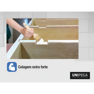 Adesivo PVA com alta força de colagem e flexibilidade, ideal para artefatos de madeira, laminados, papel, papelão e superfícies porosas.